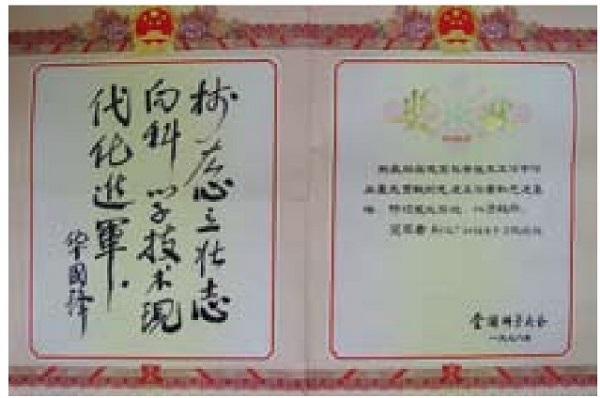 華國鋒親筆題詞的榮譽(yù)證書